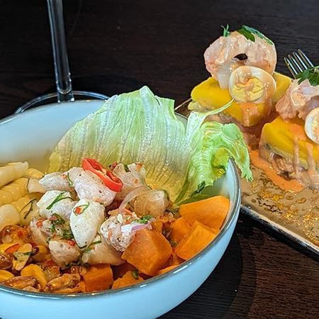 午前中に船に戻り、お昼前にはペルー料理教室がありありました。シェフとバーテンダーによる定番の料理セビッチェとカクテルのピスコサワーの作り方がありました。