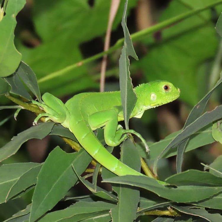 陽も完全に暮れた頃、他のボートからアリゲーターが見つかったと連絡が入り合流します。そこには10センチほどのアリゲーターの赤ちゃんが湿原から顔を出している小枝に留まっているのでした。慣れたスタッフが一生懸命探していて、見つけられないときもあるようですが、逆にこんな幼虫のアリゲーターを見られたというのもいい経験だと思いました。