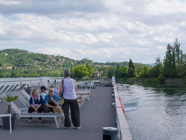 最も気に入っていた場所は屋上のデッキで最前部チェア。移り変わる川沿いの風景を眺めることでした。川沿いの流れていく家並みや自然を見ていると、プロヴァンスがどんなところなのか見えて来ます。ガイドブックに乗っている観光地だけでなく、その地域全体がどんなところか見えてくるように思います。