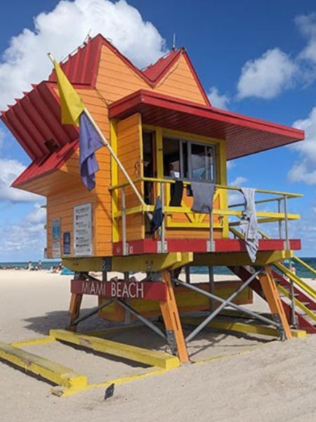 砂浜でのんびりすることは必須です。大西洋に面したエメラルド色の海には、1ストリートごとに形も色も違う、カラフルなライフガードタワーが建っていて楽しめます。