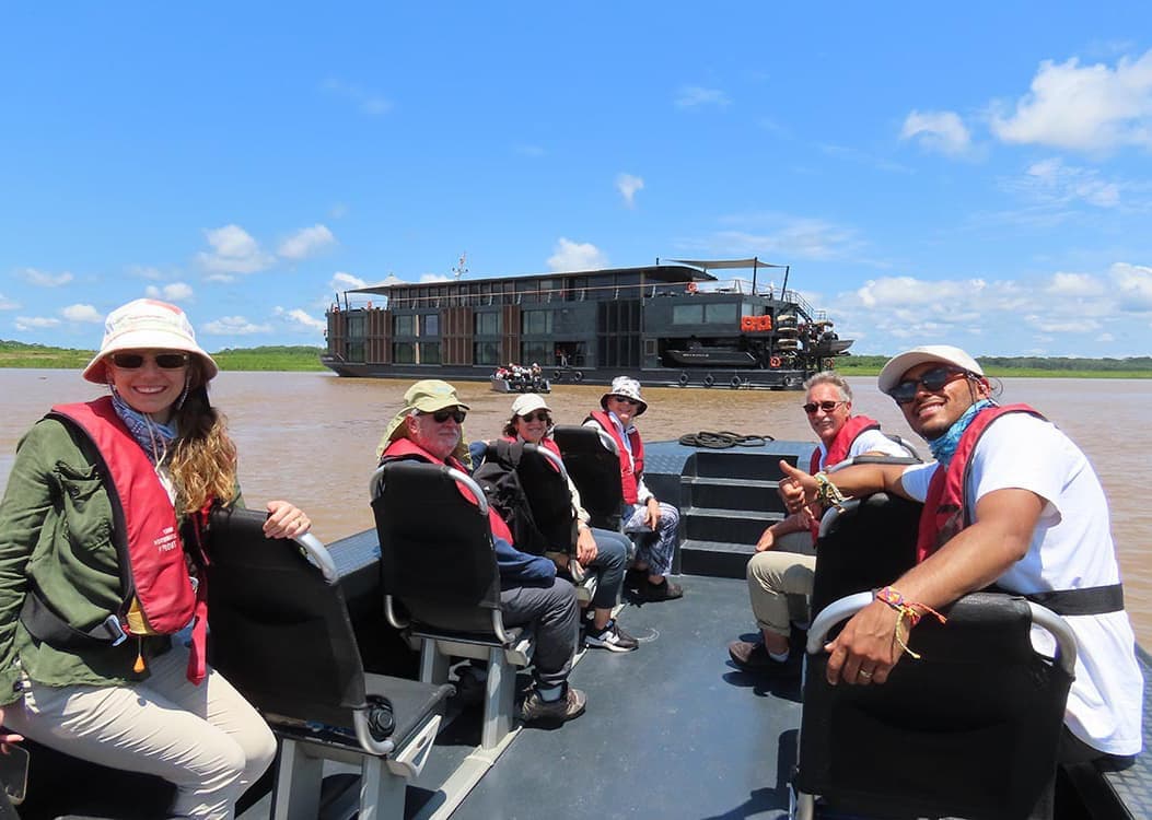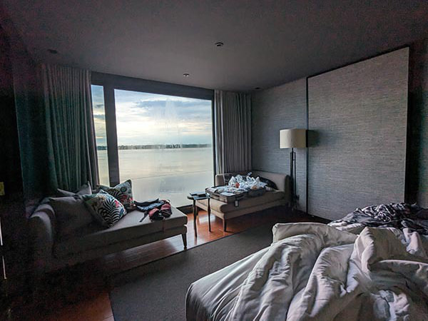 朝起きてカーテンを開けた時の風景です。船とは思えない前面窓の広い客室は、アマゾンような大自然とラグジュアリーの究極のコラボという贅沢は過去に経験したことがありません。