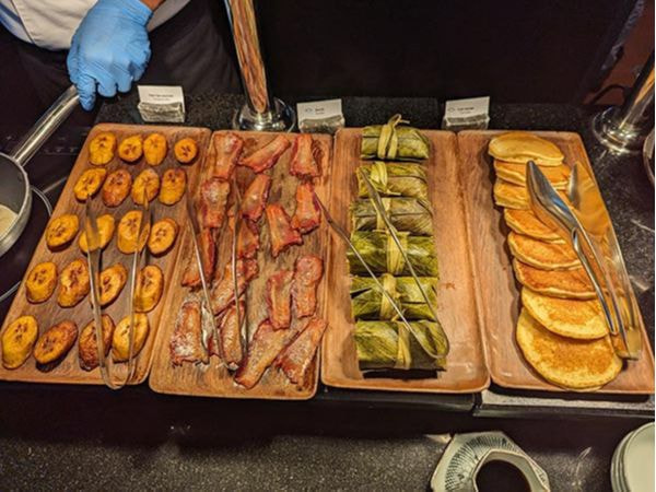 ランチは焼きバナナなど、アマゾン地産地消の料理が並びます。